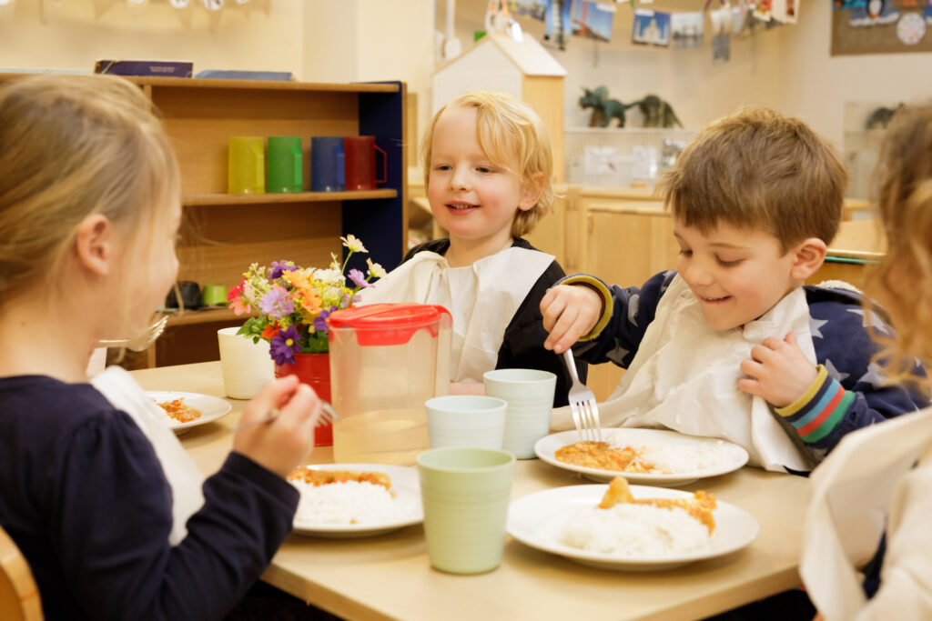 Following Setting the Table and other local and national guidance, our nursery chef prepares fresh, nutritious meals and snacks each day, using natural ingredients to create a varied and well-balanced diet. Our menus are thoughtfully planned in advance, running on a five-day, four-week rotation and reviewed regularly to reflect seasonal changes, cultural diversity, and the evolving needs of the children.